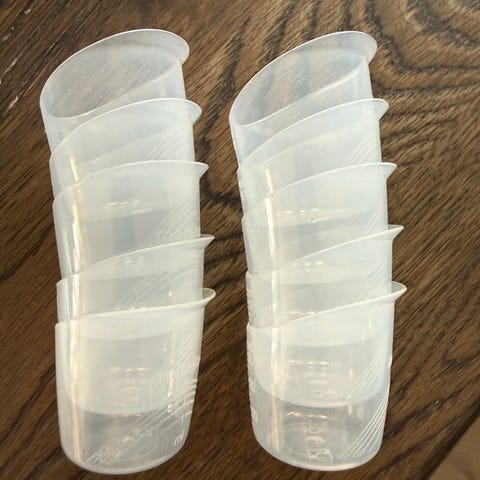 14 stk 100 ml oppbevaringsbokser (sykehusmodell) m/lokk