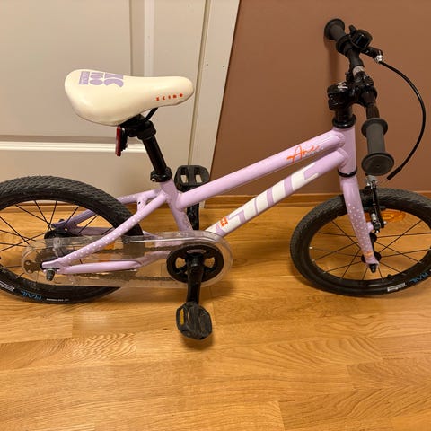Lett sykkel til barn, betydelig lettere enn en ordinær 16" barnesykkel, og håndteringen blir derfor enklere for fire–seksåringene. Vekt: 7,1 kg.