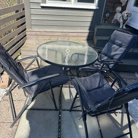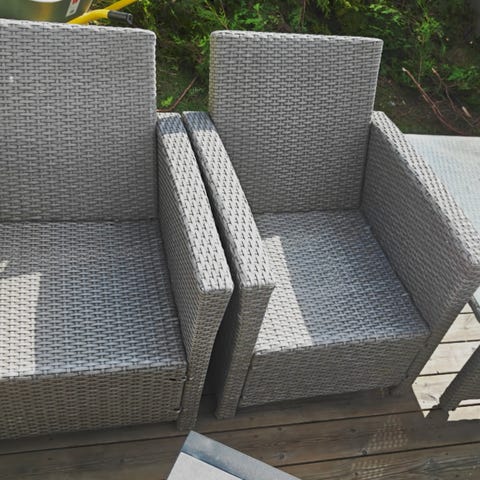 Hagemøbelsett spisegruppe bord og 4 stoler grå kunstrotting glassplate
