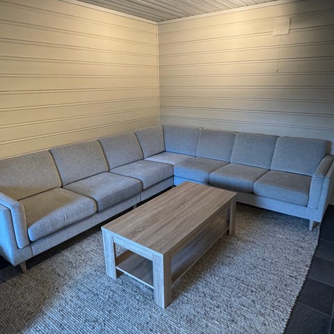 Hjørnesofa og to stoler, kjøpt på bohus for 4 års siden, lite brukt da vi mest bruker god stoler, selges kr 10000,-