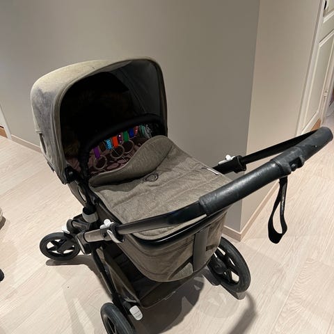 Bugaboo Fox 3, kjøpt ny 2023 og brukt av 1 barn. Komplett med liggedel, sittedel, parasoll, koppholder, regntrekk og myggnetting (med lite hull). Alt fungere som det skal. Noe bruksslitasje, se bilder. Legger ved link til siden vi kjøpte den fra: https://www.barnashus.no/bugaboo/fox-3-komplett-graphitestormyblue
