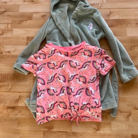 Pakke med klær til jente str 122-140.Kan ha noen hull, men ingenting som nålen kan fikse. Gitt alt samlet.