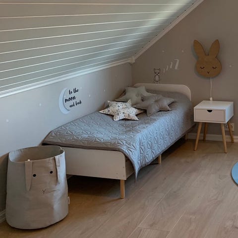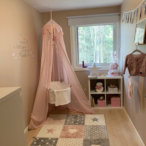 Brukt et år av et barn i røyk og dyrefritt hjem. Den ene enden har åpnet seg og det har derfor gått et lite hull der tråden var festet. Kan enkelt settes sammen igjen.
