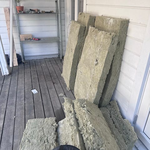 Selges grunnet oppussing. Isolasjon er brukt mellom etasjeskillere og ikke eksponert for fukt/utendørs luft. Kan være noe støv på platene