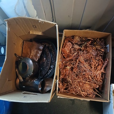 Diverse ting av kobber selges.