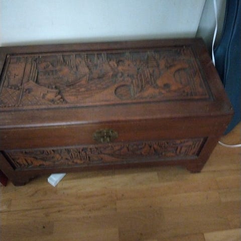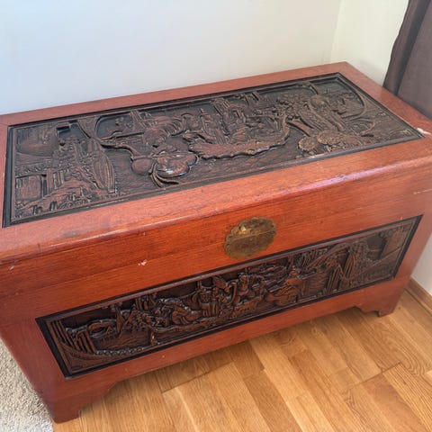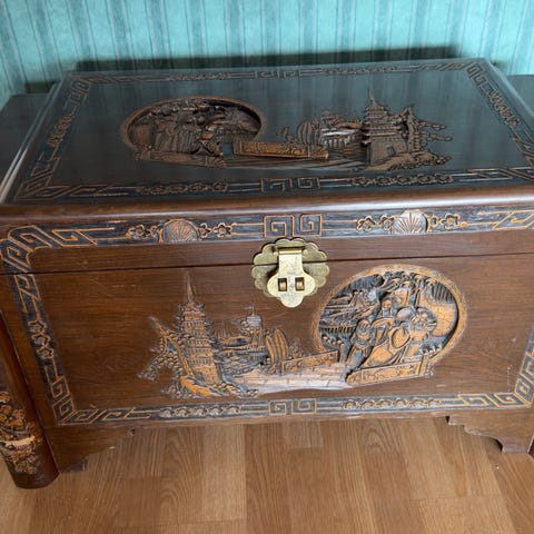 Håndskåret asiatisk kamfertrekiste - pris justert!