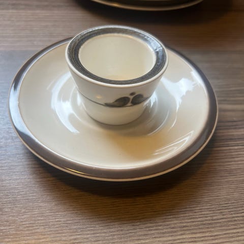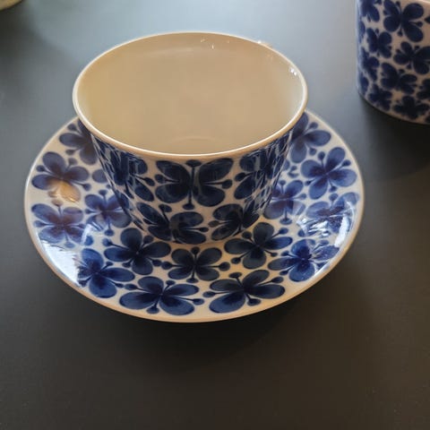 Rörstrand kopp i porselen. Hvit kopp med håndtak, dekorert med tekst og rødt hjerte-motiv på utsiden. Egnet til varme drikker som kaffe, te eller kakao. Klassisk form med rund åpning og stabil fot. Basestempel fra Rörstrand under koppen.