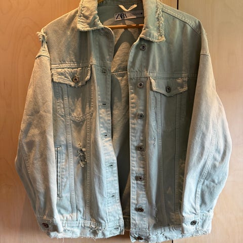 Stylish kremhvit jakke fra Zara med belte i livet. Jakken er i et denim-stoff🤍👜 Den kan brukes på mange ulike måter! Pent brukt