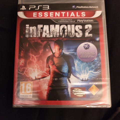 Sony inFAMOUS 2 spill til PlayStation 3. Actionspill på Blu-ray-plate i original eske med omslag og manual. Aldersgrense 16 år ifølge PEGI-merking. Egnet for bruk på PlayStation 3-konsoll med støtte for Blu-ray-spill.