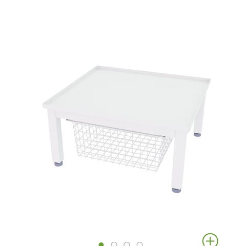Praktisk stativ fra IKEA som løfter vaskemaskinen eller tørketrommelen til en bedre arbeidshøyde.