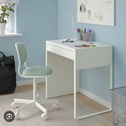 Micke skrivebord fra IKEA med to skuffer selges. Har stått på jenterommet her i huset i ca 4-5 år. Helt og pent, men noen ganske beskjedne merker på platen. Hentes på Skallestad på Nøtterøy.