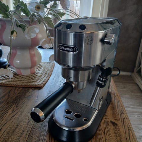 Delonghi dedica ec685bk espressomaskin + Wilfa CG-110S bønnekvern, og dunkeboks i sort plast (utrolig enkel å rengjøre!). Alt er pent brukt, og espressomaskinen dekalket iht leverandørvestemte intervaller.