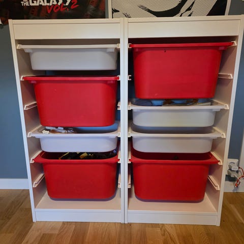 Om en ønsker plastlokk på kassene kan dette skaffes rimelig fra IKEA.