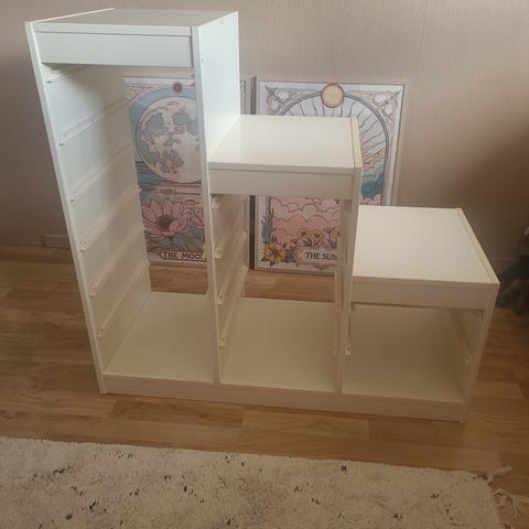 Passer forøvrig perfekt i bredden sammen med mindre vegghengt oppbevaringshylle som jeg også selger. Se egen annonse.