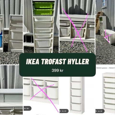 IKEA Trofast oppbevaringshylle med plastkasser hvit grønn