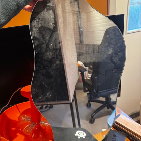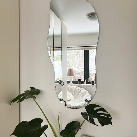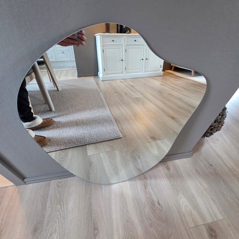 Har et lite merke (vist på bilde 2), men har ikke vært synlig når speilet var hengt opp.