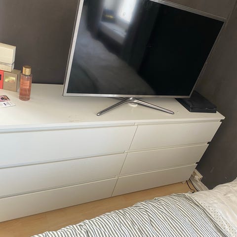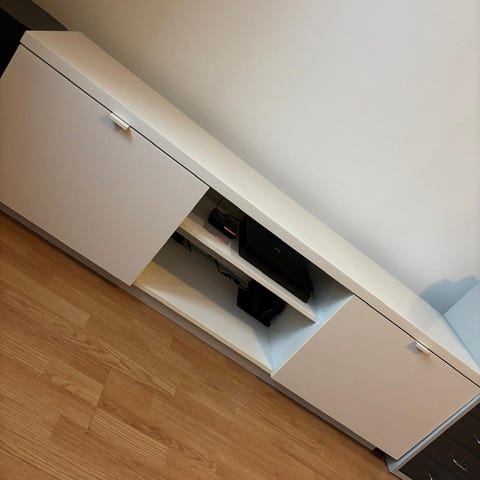 Pent brukt Billund sjenk fra Jysk. Det er laget et hull til ledninger i bunnplaten. Bakplate er montert «feil vei» da vi har brukt denne frittstående