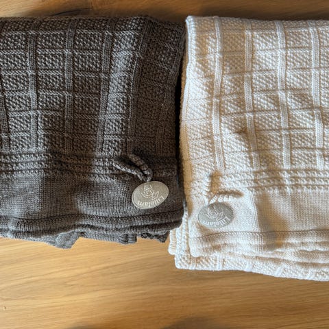2 pent brukte ullpledd fra lillelam. Inge hull eller synlige skader, men dessverre litt flekker fra kakao( vil tro dette er mulig å fjerne, jeg har ikke gjort et skikkelig forsøk på det) blått pledd i tynnere ull, grått pledd i tjukt ull.