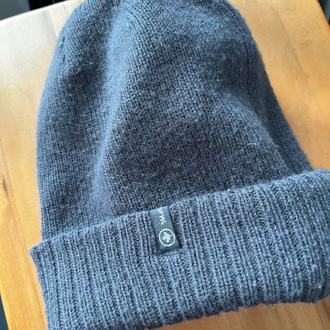 Arc'teryx lue i blå farge, laget i 50 % ull og 50% polyester. Modellen er one size og har brettet kant.