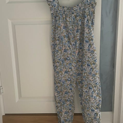 Newbie jumpsuit i blomstrete mønster i str. 110. Det er noen bruksmerker på den, se bilder.