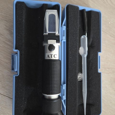 Selger et refraktometer jeg har brukt til øl brygging. Fungerer helt perfekt. Denne modellen har automatisk temperatur kompensering.