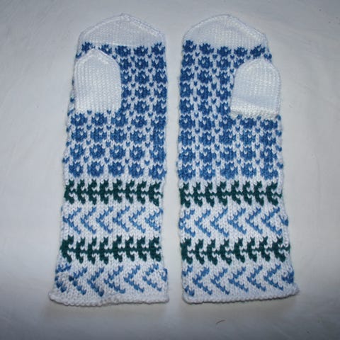 Håndstrikkede ullvotter til noen med glimt i øyet. Ett mønster som snakker for seg selv, med stjernemønster på innsiden/håndflatesiden.