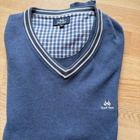 Jean Paul genser for herre i størrelse XL. Genseren er blå og laget av bomull.