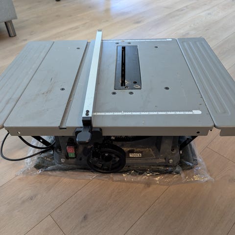 Fullt fungerende DeWalt kombisag. Her har du alt i ett. Den fungerer både som bordsag og som kapp-/gjærsag. Alt fungerer som det skal og det er generelt lite slitasje. Typeskilt (ligger noe skjult under bordet) viser produksjonsår i 1997.