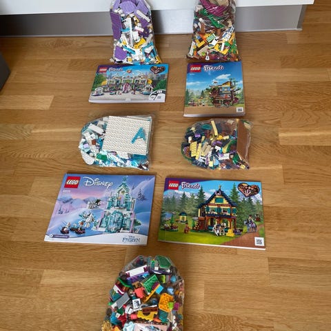 Frøkna rydder i lekene sine, og selger 6 stk kjempefine Lego-sett. Alle settene er komplette, og pent lekt med. Byggeinstruksjoner følger med til samtlige sett 😊👍