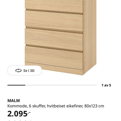Selger trefarget malm kommode fra IKEA. Ny pris tilsvarende 2095kr
