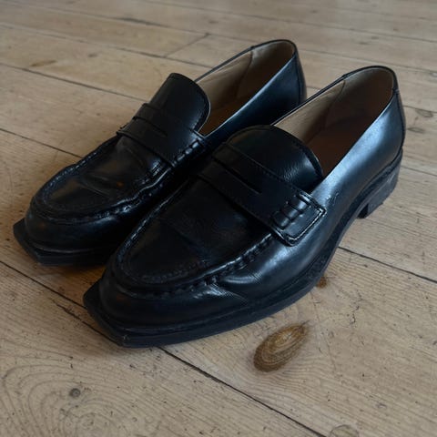 Skoene er brukt mindre enn 10 ganger og har blitt behandlet med pleiende krem flere av de gangene.