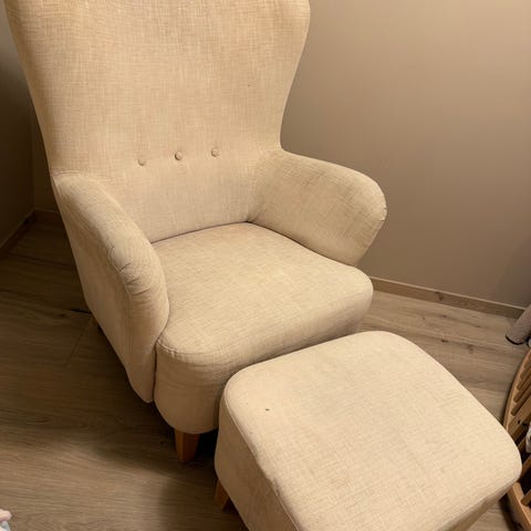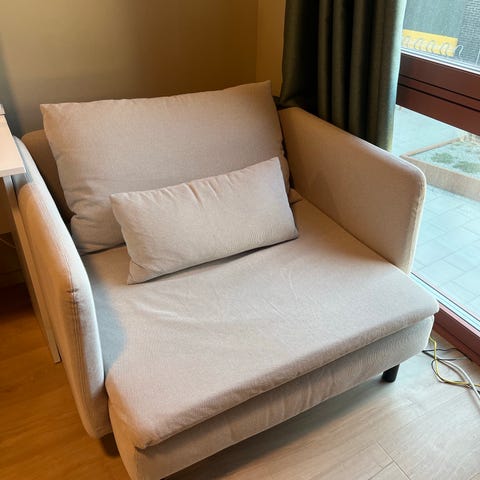 Behagelig og bred loungestol som kan brettes ut til å bli seng.