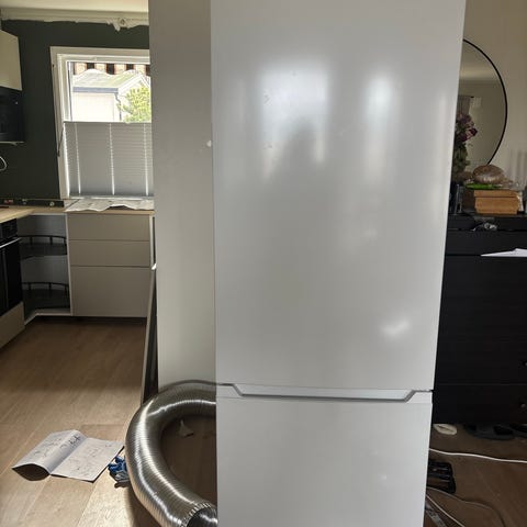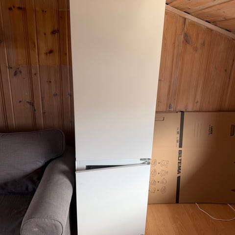 Kombiskap fra Bosch. Det er noe som er galt med det da kjøledelen ikke ble helt kall og fryseren full med is. Usikker på om det er kun døren til fryseren som ikke holder helt tett eller noe annet, er ikke så flink med elektronikk. Nb! Veier fryktelig mye, hentes 2 trapper opp uten heis