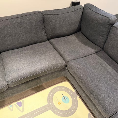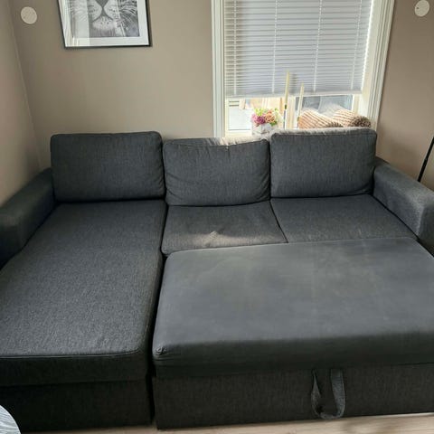 Sovesofa kan hentes fra bakkeplan og kan deles i to.