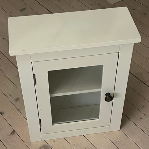 Ett koselig lite hvitt vegg skap.