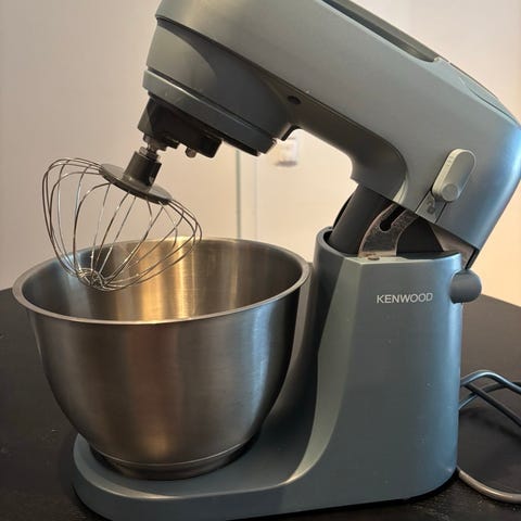 Selger kjøkkenmaskinen min da jeg har gått over til en annen type. Godt brukt og har hatt mye glede av maskinen. God til å piske, elte og røre sammen. Følger med ballongvisp, k-krok, elte-krok, sprutdeksel og blender som monteres på toppen av maskinen ved bruk.