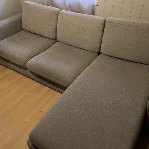 I god stand, ingen synlige flekker. Trekk kan taes av å vaskes i maskin. Må hentes og ha med bærehjelp, da jeg ikke har mulighet til å hjelpe.