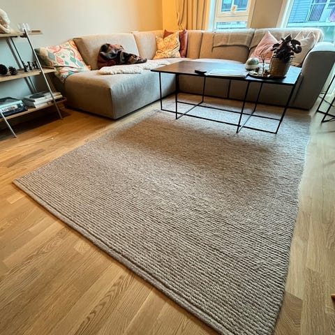 Selger mitt veldig fine kvalitetsteppe i nydelig nude/beige farge pga flytting og fordi det nå er for lite. Det er såvidt jeg kan se ikke lett å se det er brukt, men jeg fylte inn for er det er i pen stand fremfor å skrive at det så helt ubrukt ut.