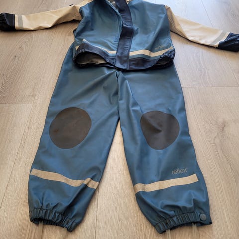 Kuling regndress i størrelse 86 for unisex barn. Dressen er grå og har fleecefôr på innsiden for ekstra varme og komfort. Yttermaterialet er vannavvisende, mens innsiden er i myk fleece. Dressen har hette, elastikk i ermer og ben samt fotstrikker for å holde bena på plass