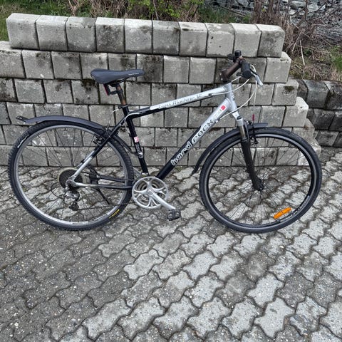 Nakamura hybrid sykkel med 28"/700c hjulstørrelse og unisex ramme i størrelse M (18"). Sykkelen har rett styre og smale dekk som egner seg for bruk på asfalt og lett grus. Utstyrt med girsystem med flere utvekslinger, felgbremser, skjermer bak og støtte. Passer til pendling, tur og hverdagsbruk i variert terreng der man ønsker en kombinasjon av komfort og effektivitet.
