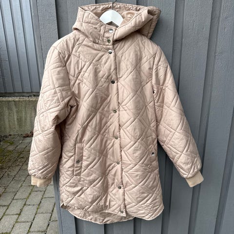 Bubbleroom jakke for dame i størrelse S. Jakken er hvit / beige. Den har quiltet mønster, rund hals og lukkes med glidelås foran. Modellen har lange ermer og to frontlommer. Passer som lett ytterjakke på våren eller sommeren. Brukt bare 2 ganger fordi den desverre er litt forstor. Helt nydelig jakke!!