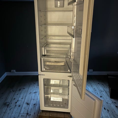 Brukt kjøleskap med liten frys 140 cm høyt. Må vaskes litt men eller fungerer det veldig bra.