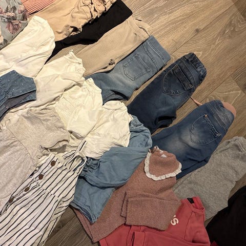 Klespakke til gutt med hverdagsklær, 4/5 av hver overdeler, bukser osv. i størrelse 92/98 i hovedsak i blåtoner.