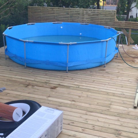 Avenli rund rammebasseng 3,6 m blå med filterpumpe