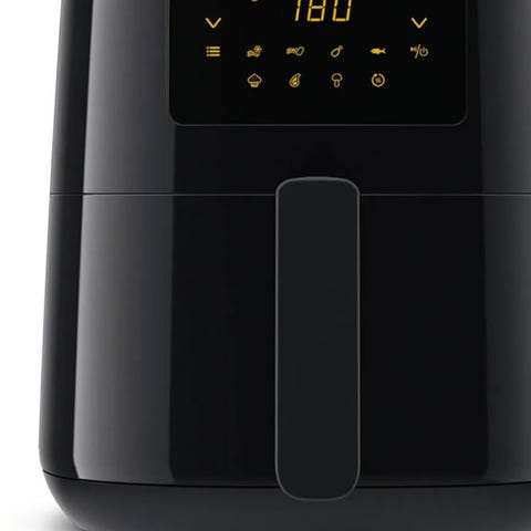 Philips airfryer i svart utførelse. Enheten har uttrekkbar skuff med håndtak foran for enkel inn- og uttak av mat. Luftfritering gir mulighet for tilberedning av mat med lite eller ingen olje sammenlignet med tradisjonell frityr. Passer til steking, oppvarming og grilling av ulike typer mat i hjemmet. Strømkabel er festet bak på apparatet. Nærmere modellbetegnelse og kapasitet fremgår eventuelt av merking på selve produktet.