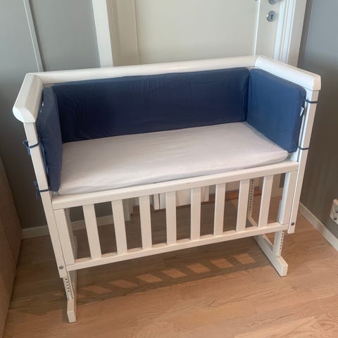 Troll bedside crib babyseng i hvit farge.