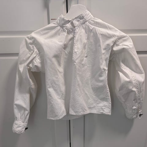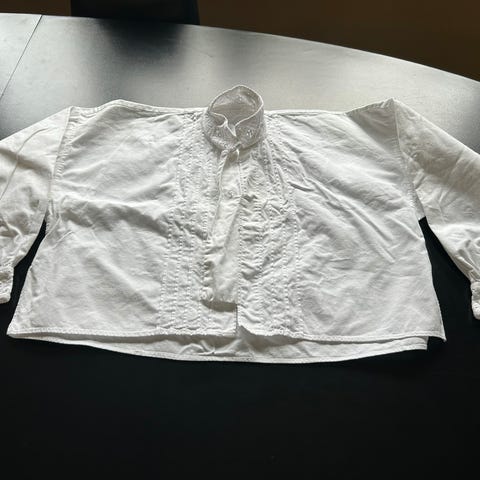 Bunadskjorte til barn i størrelse 92. Skjorten er hvit og laget i bomull. Modellen er unisex og har lange ermer. Detaljer som knappelukking og dekorative knapper ved mansjettene. Passer til bruk for både jenter og gutter i størrelse 92.