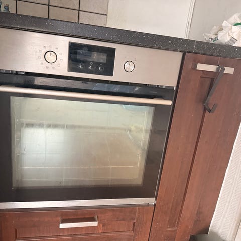 Gram Integrert stekeovn i rustfritt stål. Ovnen er innbygget i kjøkkeninnredning under platetopp. Front i stål og glass med to betjeningsknapper og display. Stor ovnsdør med glassfelt gir innsyn til ovnsrommet. Passer til standard kjøkkenmoduler for integrerte hvitevarer. Egnet til vanlig matlaging og baking på kjøkken med innebygd løsning.