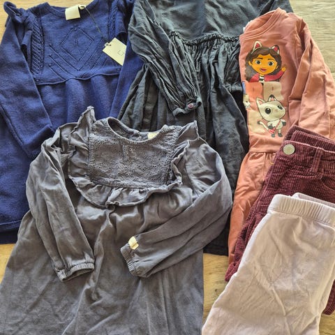 Strikkejakke fra Wheat str 104. To gensere fra Newbie str 98/104. Fint brukt til et barn