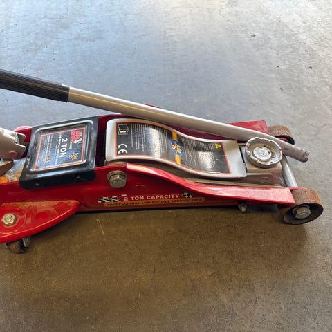 Byron’s garasjejekk med løftekapasitet på 2 tonn. Modellen er en lav garasjejekk (floor jack) i rød farge, levert i plastkoffert for enkel oppbevaring og transport. Egnet for løfting av personbiler innenfor angitt vektgrense. Jekken har hjul for enkel posisjonering under kjøretøyet og leveres med delt løftestang som kan monteres ved bruk. Passer til generelt vedlikehold og dekkskift der det er behov for mobil løfteutrustning med kapasitet opptil 2 tonn.